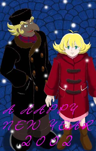 去年の7月には既に決まっていたと言う、曰く付きの年賀状です。(^-^;;;;;;;;) レッド公、ティマ、背景とそれぞれ別々に描いて、後からバランスを取って 組み合わせました? なので、ぢつはパースがバラバラだったりします。(爆) 本当はもっと二人を見下ろしたアングルにして、雪を見上げている感じにしたかったのですが、私の力不足でこうなりました。 レッド公に比べて、ティマが硬いし・・・・・・・・・(^-^;;;;;;;;) とりあえず「お父様、雪・・・」って、こっ恥ずかしい感じを目指しました。(*^-^*) |